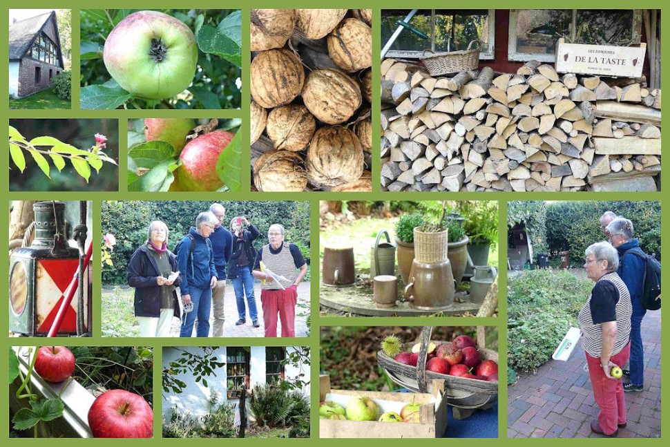 Die besondere Atmosphäre des Grundstück wurde beim Kaffetrinken durch Pferdegetrappel noch unterstützt. Ich fühlte mich in einer anderen Zeit und freute mich über unseren ruhigen, ja feinsinnigen Austausch. Zum Abschluß halfen wir noch beim Aufsammeln der Walnüsse und Carola und Kalle nahmen den fragwürdigen "Jamba" mit zum Apfelbestimmen. Wir waren uns einig, dass die Treffen in kleiner Runde uns sehr gefallen. Marianne hat wieder Fotocollagen erstellt.
